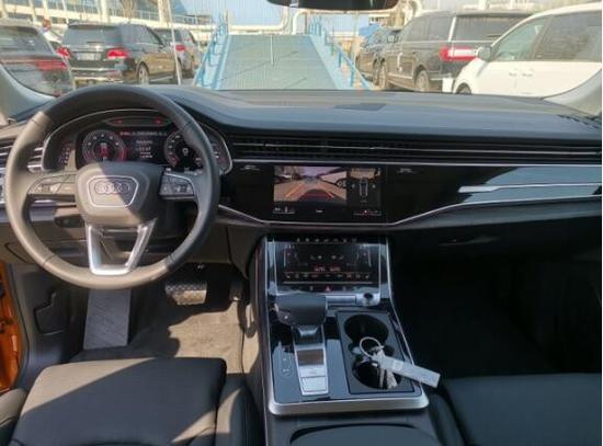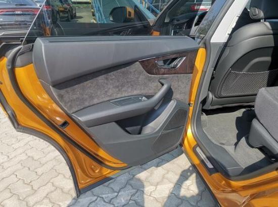 车厢内部,会感觉奥迪Q8和全新A8的设计高度雷同。奥迪全新家族化设计,科技感十足的虚拟驾驶舱氛围,同样的三块大屏,横向贯穿的前排空调出风口。中控台采用大面积的真皮包覆,且向驾驶员一侧倾斜,形成以驾驶员为中心的驾驶舱。整个中控采用了全触屏来对车辆进行操控,没有一个实体按键,对技术要求极高,非常的高大上。