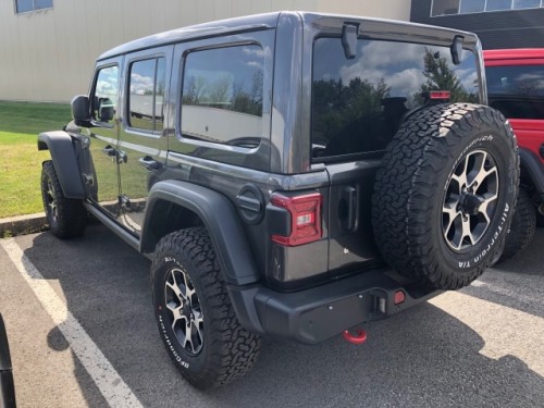 2019款JEEP牧马人依旧保持了高高在上的车身结构,视觉上给人异常庞大的感觉,然而它的长宽高则是4882*1894*1848mm,轴距则是3008mm,这对于中大型SUV来说并不是非常夸张的参数,但是相比牧马人普通型号还是要大不少,主要还是依据越野用途设计。车身侧面是方正平直的造型,同时可以看出轮毂镂空面积变大。到店的是四门版,肯定要比两门版的更加方便,如果生活用车也比较适合。