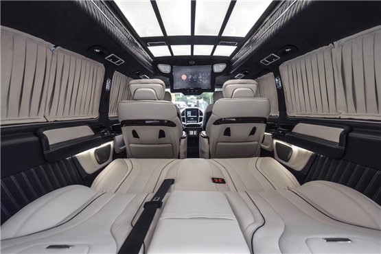 奔驰威霆改装迈巴赫版方案有很多种(大致分三种风格:1奔驰威霆改装高顶隔断七座-商务办公接待;2奔驰威霆改装平顶无隔断-私人娱乐;3奔驰威霆改装高顶半隔断商务车私人豪华房车,这三种风格又可以互相叠加、互相交错,最简单的商务风格都很多改装项目:地毯、木地板、真皮座椅、窗帘、大屏显示器、车顶/车侧蒙皮、九宫格顶灯、冰箱、办公桌、等等。智能化特点:航空座椅的调节(靠背、腰托、腿托、脚托、360旋转、按摩、加热)由触摸屏控制,只为您的舒适和便捷。后排娱乐、办公桌、大屏显示器、放倒试沙发床,由此您可想象奔驰威霆的舒适度、便捷度和豪华程度,也给您在旅途中提供了更多乐趣。
