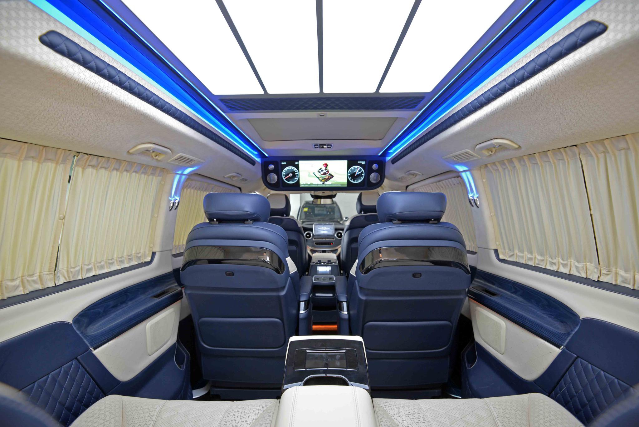 奔驰V260L迈巴赫版商务车、奔驰V260LAMG加长版改装商务MPV隐藏六座尊享版,全车纯手工包覆,加装高顶改装,整车长宽高5370*1928*2080,C照国六排放标准,全国4S店联保。