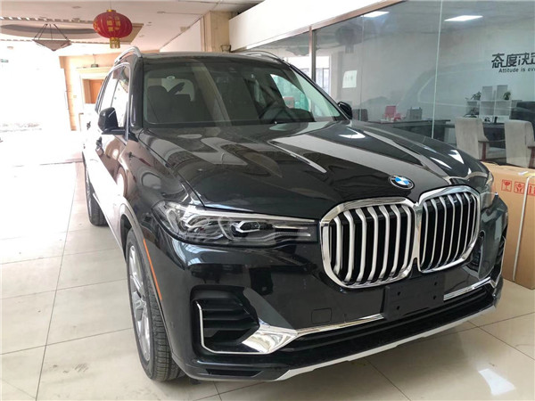 19款宝马X7 (配置|询价)作为一款大型SUV,作为宝马的旗舰级产品,它自然要配备宝马最大的双肾进气格栅,这个宝马标志性的产品再次绽放出它的光芒。新车巨大的双肾格栅带有主动式进气格栅,可以缩短发动机的暖机时间与降低风阻,尽可能提升效率。而两侧大灯组尺寸与样式也非常帅气,标配LED光源可选装激光大灯,据悉最远照射距离可达600米,整体来看科技感与时尚感都非常出色。