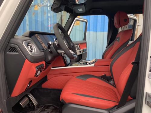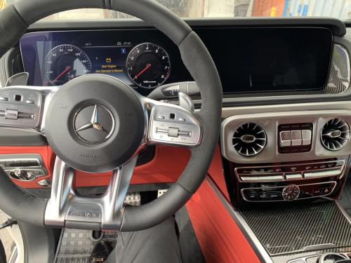 19款奔驰G63全新的直瀑式进气格栅可以说是家族最新的设计风格,也是在新车外观造型上与奔驰系列产品差异化最明显的地方。此外,G63最大的轮圈尺寸,进一步提升了它外观造型的彪悍程度。展车不仅采用了全新的车身涂装,还搭配了红色的轮圈装饰,更加个性。新G63保留了新G500的整体设计,除配色差异外,新车还换装了全新造型的平底式 运动方向盘,其两侧配以打孔皮质包裹,下部镀铬装饰的造型也与新G 500明显不同,看上去十分战斗。此外,全液晶仪表盘+中控大屏的双12.3英寸屏幕设计在新车上也没有缺席,营造出了浓郁的科技感。《联系方式见文章底部》