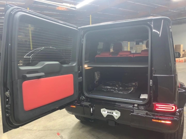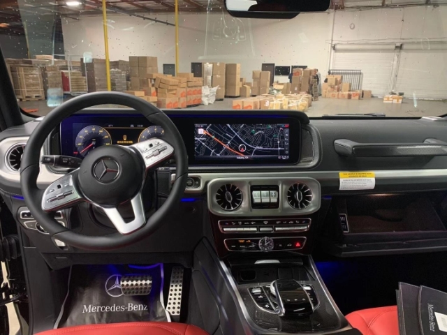 2019款奔驰G500内饰豪华气派,卓越的品质和精致的工艺在车内体现得淋漓尽致,对细节的精益求精是内饰设计中的重要原则。车内采用深色调与桃木装饰,黑色真皮运动座椅非常舒适,方向盘以高档真皮包裹装饰,触感极其细腻。配有桃木装饰的操控台,稳重大气,同时提高了整体的质感。各种功能按钮应有尽有,丝毫不次于豪华轿车的功能。 内饰焕然一新,虽然还是以平直的线条为主,但完全没 了上一代车型那种粗糙的感觉了,用料和做工都能令人满意。跟奔驰的很多其他车型一样,它也用上了双12.3英寸屏幕,科技感很强。三把差速锁按键依旧布置在中控台的正中间,这是奔驰G级的灵魂所在。19款奔驰G500经过全新改款中控大屏和仪表部分也采用了科技感满满的双12.3寸巨幕,空调出风口也改为重新设计的炮筒式,豪华感和科技感大大提升。