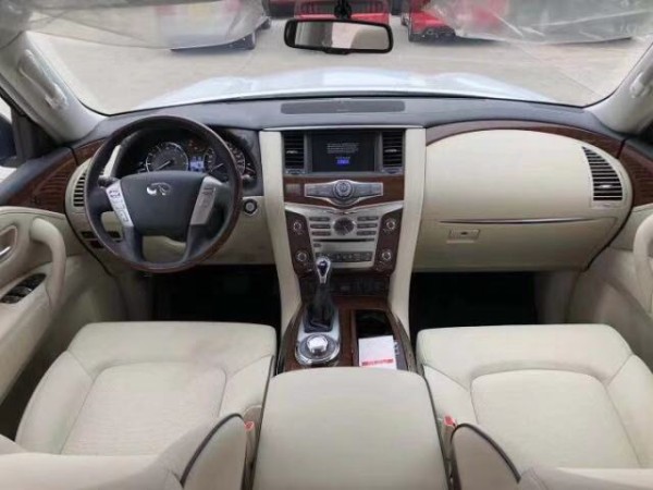 19款英菲尼迪QX80车内采用电子冷发光仪表盘,匹配8英寸高分辨率彩色触摸屏幕;方向盘带巡航、音响以及电话按键,并可实现加热功能;还带有内存为40GB的硬盘导航系统,以及9.3G的音乐存储空间。在通信系统上,配备互动式车载信息通信系统以及实时道路交通信息系统,为驾驶者用车时提供实时的道路信息。