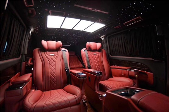 奔驰威霆中排豪华高档航空座椅,旋转电动加热按摩通风USB接口,犹如飞机头等舱的感觉,让您坐在车上有种不想下车的心思!整个车内的隐私性和隔音效果做到最佳,高档纯棉布艺专用窗帘除了遮光隐私外,也使得整车档次提升不少;整车采用大能MPV全车顶级隔音配置方案,让车辆即便是在使用过程中也更安静舒适!