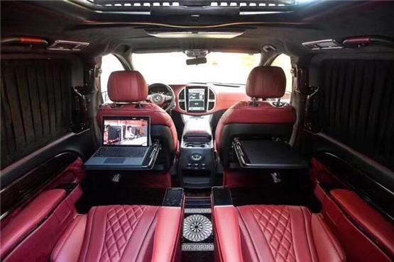 奔驰威霆无隔断改装,做工精致布局合理,内饰风格简约大气。全舱座椅采用进口nappa真皮制作,正副驾驶座椅后面都设置一个折叠式小桌板,可娱乐或办公,设计很人性化。多功能按摩座椅可前后电动滑动,腿托可电动打开,缓解腿部疲劳!亦可以旋转成面对面的交谈模式,更方便家人间的交流或者商务的洽谈。