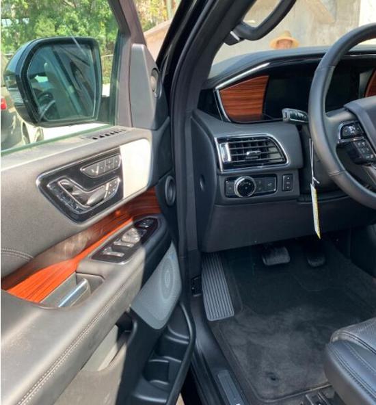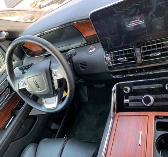 19款林肯领航员3.5TT 7座精雕细琢的内饰, 结合了美国胡桃木和高级真皮材料、丝光镍饰件与白色发光二极管等组合一起,营造出一个豪华、浪漫而又极具现代感的车内环境。方向盘和轿车一样的轻盈,周身散发出来的尊贵气息,让人肃然起敬。