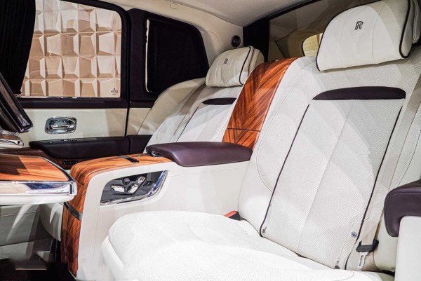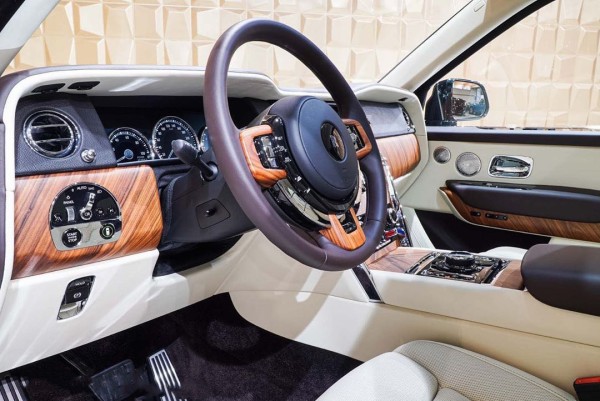 劳斯莱斯库里南的内饰延续了全新幻影 (配置|询价)的设计风格,整体用料依旧一如既往的奢华高贵,中控采用大面积实木打造,配合方向盘上的实木点缀,既复古又豪华。中控屏幕尺寸为10.2英寸的屏幕,轻触车门把手上按键就可以电动关闭。
