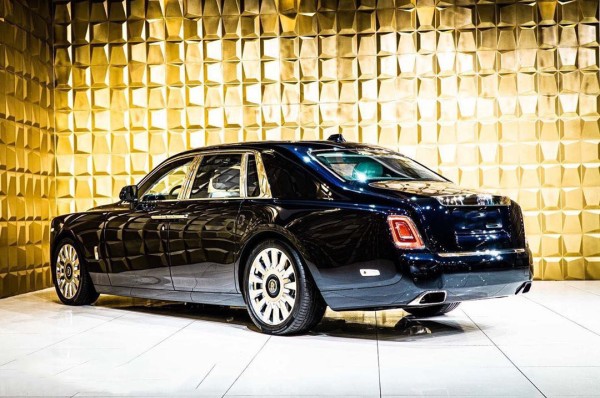 劳斯莱斯幻影的尾灯设计十分小巧,外侧则有镀铬装饰,造型和车尾整体很贴合,内部采用过来全LED灯源,双边共4出布局的排气管,采用了可变阀门系统,根据工况调节阀门的开关。后备厢盖上沿呈现上凸走势,照位上方的镀铬饰条也位于顶部,这使得新车的车尾在视觉上显得更加高大。