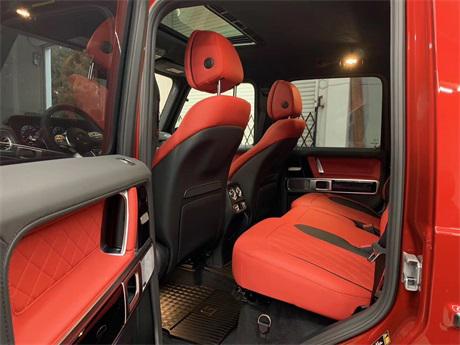配置:2019款奔驰G63中国红/红内,4.0升V8AMG发动机,577匹马力,AMG变速TCT9速变速箱,前座椅记忆,前排座椅加热,滑动玻璃天窗,三区气候控制,空气净化,电热挡风玻璃,加热方向盘,AMGNappa真皮性能方向盘,Burmester环绕声系统,苹CarPlay,64色LED环境照明,自动启动/停止,AMG性能排气系统,AMG高性能制动系统,红色的刹车卡钳,AMG控制自适应阻尼架,主动车道保持辅助,盲点辅助,主动刹车辅助,交通标志辅助,主动停车辅助,360度环影,主动多光束LED照明系统,LED日间运行灯 选配:AMG运动包 designo高级金属漆 22寸轮毂 独家定制座椅