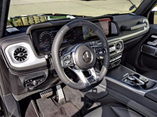 19款全新G63内饰方面,新G63保留了新G500的整体设计,除配色差异外,新车还换装了全新造型的平底式AMG运动方向盘,其两侧配以打孔皮质包裹,下部镀铬装饰的造型也与新G 500明显不同,看上去十分战斗。此外,全液晶仪表盘+中控大屏的双12.3英寸屏幕设计在新车上也没有缺席,营造出了浓郁的科技感。