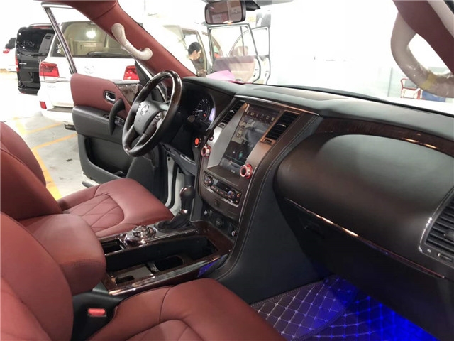 19款日产途乐内饰依旧朴素,很规矩整洁,没有太多豪华的装饰。中控台屏幕的位置也变身为储藏盒,座椅为织物座椅,但也确实符合它的实力者身份。途乐拥有豪华配置,比如定速巡航(带自动变速控制)、一键启动、无钥匙进入等等,还有人性化的配置——冰箱。 第二、三排座椅都可折叠,形成一个较平整的区域。