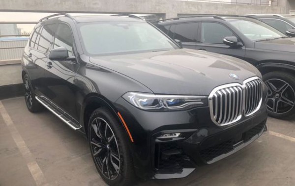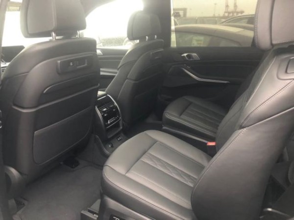 20款宝马X7 (配置|询价)车身侧面上方配有黑色行李架,前翼子板下方为长条状空气导流槽,腰线较为低矮且呈上扬之势,选用21英寸双五辐式拼色轮毂,车尾造型方正,LED尾灯组与粗壮的银色饰条贯穿相连,采用上下分段式电动尾门,排气采用双边共四出式布局,保险杠下方两侧配有大尺寸镀铬尾喉装饰。