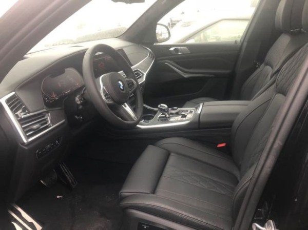 20款宝马X7内饰部分,宝马X7采用最新家族式设计语言,使用大量真皮、木纹饰板进行包裹。配备12.3英寸带有注意力检测的全液晶仪表和12.3英寸悬浮式触控显示屏,空调出风口与温度显示屏、实体功能按键结合在同一区域,并使用银色装饰条进行点缀。