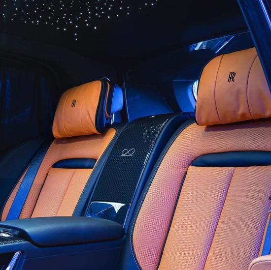 20款劳斯莱斯库里南Black Badge的内饰换上了高科技的裸织工艺制成的材料,同时增加了全新的色彩,亮黄色的全真皮装饰。另外在后排座椅扶手上,发光脚垫上和时钟边框上都有个性化“无限符号”,大幅提升了整车的极致豪华感。