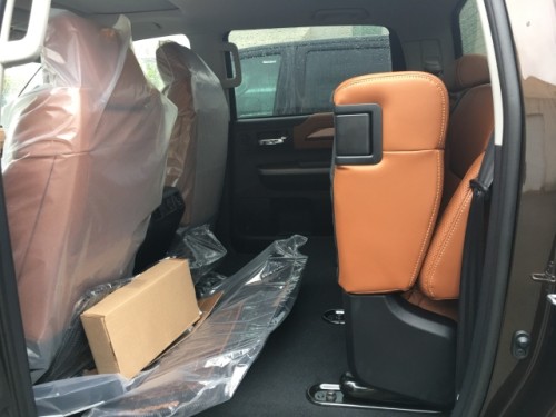 19款丰田坦途皮卡店内现车,TRD 1794 SR5 PRO等等,颜色齐全,手续随车当天票,今天给大家介绍的这款1794是坦途里配置最豪华的,具体配置:全车棕色内饰带桃木装饰,真皮加热通风座椅,电动记忆组件、10项座椅电动调节,电动折叠镀铬加热后视镜带自动防眩目和转向灯、BSM并线盲区辅助、导航、倒车影像、JBL音响、电动天窗、前后电眼、20寸轮毂,前排车窗一键升降,两驱四驱电子转换,双区自动恒温空调,电动调节方向盘,拖挂系统,LDA车道偏离预警系统,LED自动远光检测大灯,LED雾灯,LED日间行车灯,自适应巡航控制,PCS碰撞预警系统,RCTA倒车辅助预警系统