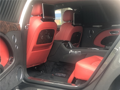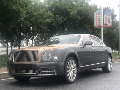 18款宾利幕尚加长 车架号:3662 颜色:玫瑰金配铁磁灰 状态:森扬现车手续齐 配置:穆勒包(21轮,车门带穆勒字样门槛嵌饰板,铸币式表面车门把手,前后排羊毛地毯,宾利徽章头枕刺绣, 后侧化妆镜饰面环绕),优选包(金色飞翼小人,宝石机油燃油盖,遥控车库门开启装置,两把雨伞,泊车钥匙),舒适包长轴距版(航空躺椅,座椅通风按摩,舒适型头枕,阿尔卡塔纳鹿皮头枕靠垫),暗色伯尔核桃木实木饰条,全尺寸中控台配两个可活动小桌板,后排小桌板,内饰情绪灯,6碟播放器,宾利影院--双10.4寸自动折叠平板电脑带