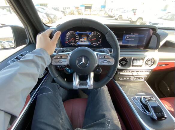2019款全新G63内饰方面,新G63保留了新G500的整体设计,除配色差异外,新车还换装了全新造型的平底式AMG运动方向盘,其两侧配以打孔皮质包裹,下部镀铬装饰的造型也与新G 500明显不同,看上去十分战斗。此外,全液晶仪表盘+中控大屏的双12.3英寸屏幕设计在新车上也没有缺席,营造出了浓郁的科技感。