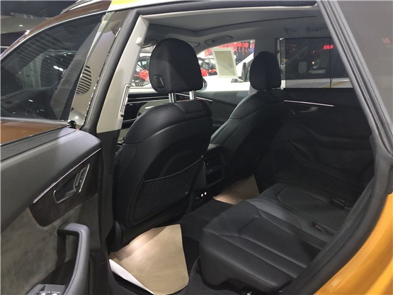 20款奥迪Q8 (配置|询价)虽然延续概念车上的无门把手设计的愿望最终落空,但直接在前后灯组后方留出凸台用以承接双腰线的设计,仍属首创, 再加上无框车门和过A柱即坠的车顶弧线,很容易俘获消费者的第一印象。