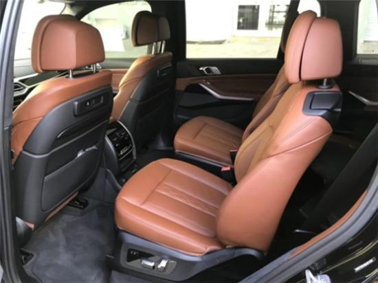 20款宝马X7来到第二排,X7配备三段式星空全景天窗,前排座椅背部提供两块娱乐系统显示屏,后排独立空调下方还集成了储物格、双USBType-C充电接口、12V电源以及娱乐设备,同时B柱也配有空调出风口。六座版车型第二排为两个独立座椅且带有电动调节功能(7座车型第二排还支持前后14.5cm的滑动调节),上方配备两个头枕,内侧配有座椅扶手,大幅提升了乘坐舒适性。