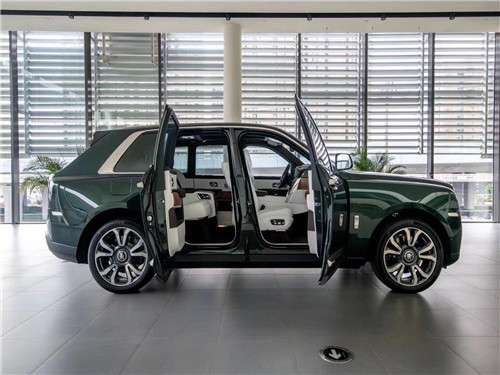 劳斯莱斯库里南延续了劳斯莱斯标志性的对开式车门设计,两扇车门均可开启乎90度,以便车内成员方便上下车,配合大尺寸的天窗,让车内乘客感觉更加舒适。车尾部分,库里南较为垂直的后风挡线条向下延伸,在尾部LOGO位置稍稍翘起,之后垂直向下,在保证超大车内空间的同时,不失温和,丝毫不会因为尺寸的庞大而显得笨重。