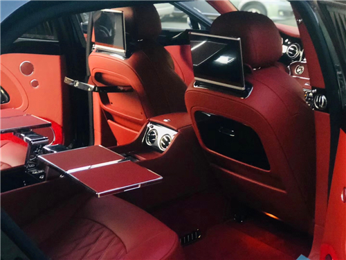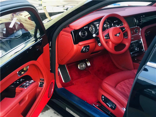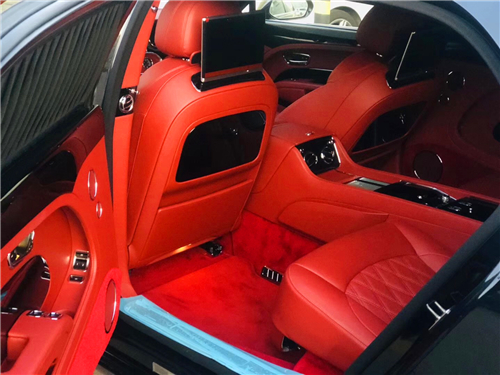 2019款慕尚加长版:四座 现车玛瑙黑外观,火焰红内饰 配置:穆勒包,舒适包(长轴版),宾利影院(10.4吋电动摺叠屏幕),全尺寸中控台配2个可折叠小桌板,后排小桌板,泊车钥匙
