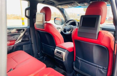 2020款雷克萨斯GX460配置:金属漆、七座、非承载式车身、6挡手自一体、18寸轮、12气囊、空气悬挂、底盘升降、动态调节悬挂系统(KDSS)、中央差速锁、天窗、氙气大灯、LED日行灯、大灯清洗、半苯胺高级真皮座椅、电动座椅主驾带记忆、前后座椅加热、前排座椅通风,智能钥匙、三区自动空调、8寸屏导航、蓝牙、4摄像头环影、电动真皮桃木放盘、定速巡航、桃木内饰、胎压监测、电动调节外后视镜(自动折叠、记忆功能、可加热、LED转向灯、倒车自动角度调节)。冰箱,三排座椅电动折叠,马克莱文森17喇叭音响,7寸双屏后排娱乐,远程摇启,前后雷达,雷达测距,PCS预碰撞系统,BSM并线盲点监测,RCTA倒车侧后方盲点警示,CCS自动爬行系统,MTS多地形选择系统。