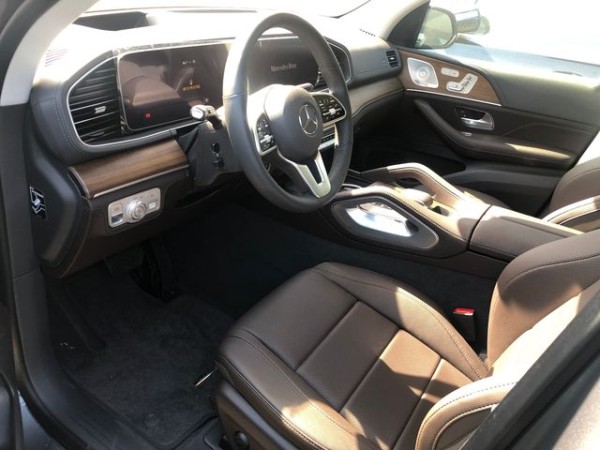 2020新款奔驰GLE450的内饰配了实木/皮革组合的多功能方向盘和带有三种颜色及亮度调节的环境氛围照明系统。车内为三排七座设计,所有座椅均由真皮打造。内饰还将有更多个性配色可供车主选择。奔驰GLS (配置|询价)450时尚的表面规划,强劲的动力性能,尽显轩昂大气风采。