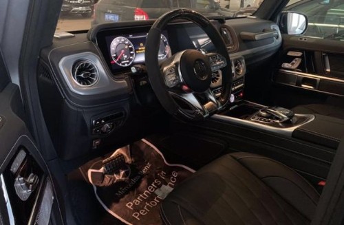 2020款奔驰G63美规配置 : 环影,宽屏,多光束大灯,暗夜包,G Manufaktur内饰增强包(菱形格座椅,Nappa真皮仪表台,头枕、脚垫图标,多轮廓按摩通风快速加热前座椅,G Manufaktur副驾扶手标志),方向盘加热,碳纤维方向盘,四季脚垫,22寸熏黑轮,真皮扶手,碳纤维内饰,最高限速