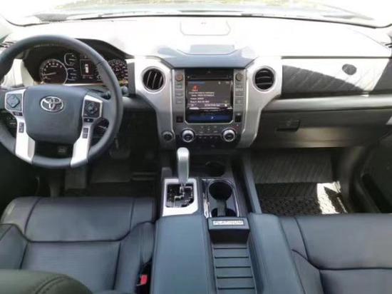 丰田坦途5.7 性能皮卡49万 配置:19款坦途(白金版配置):黑色内饰,真皮加热通风座椅,电动记忆组件、10项座椅电动调节,电动折叠镀铬加热后视镜带自动防眩目和转向灯、BSM并线盲区辅助、导航、倒车影像、JBL音响、电动天窗、前后电眼、20寸轮毂,前排车窗一键升降,两驱四驱电子转换,双区自动恒温空调,电动调节方向盘,拖挂系统,LDA车道偏离预警系统,LED自动远近光检测大灯,LED雾灯,LED日间行车灯,自适应巡航控制,PCS碰撞预警系统,RCTA倒车辅助预警系统