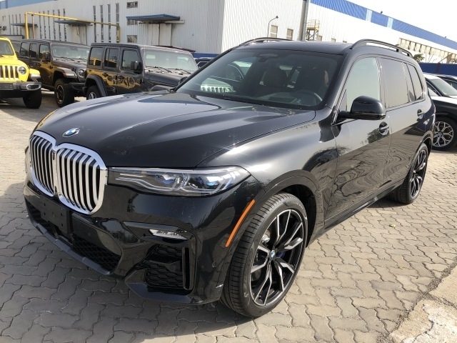 平行进口宝马X7外观设计非常越野硬派,整体高大威猛,前脸依然沿用了家族双肾设计造型,进气格珊与两侧狭长的激光灯搭配在一起,显得格外尊贵,也非常大气,从侧面看,侧面腰线从前轮一直贯穿到车尾,门把手采用了非常时尚的隐藏式设计,从尾部看去,尾部四出排气管让该车看起来运动感很强。19款宝马X7亮相,长5米多6座超宽敞,比路虎奔驰都豪气。