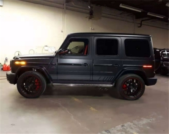 19款限量版Editon one奔驰G63的车身侧面有限量拉花,以及红色跑线轮毂,后视镜红色贴纸。看上去更加高贵