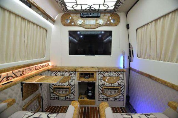 这款奔驰7+2斯宾特将商务房车将低调的奢华演绎得淋漓尽致,全面展示了改装市场在高端商务MPV方面的技术储备和设计潜力,同时也拓宽了人们对于豪华商务车的想象空间,重新诠释了高端商务车未来发展的无线可能。3.5排量,带2张航空按摩座椅、3人座联排沙发座椅和2张电动伸缩秘书椅,冰箱、咖啡机、BOSE音响系统、前后舱对讲机、4G无线WIFI、40寸电动隔断升降液晶屏(带卫星电视)和吧台隐藏式小桌板;面对客户的礼赞和市场的信赖,奔驰斯宾特7+2不负厚望,以经典、尊贵的形象迎合中国高端市场需求,更好地满足领袖级用户对豪华MPV的需要。
