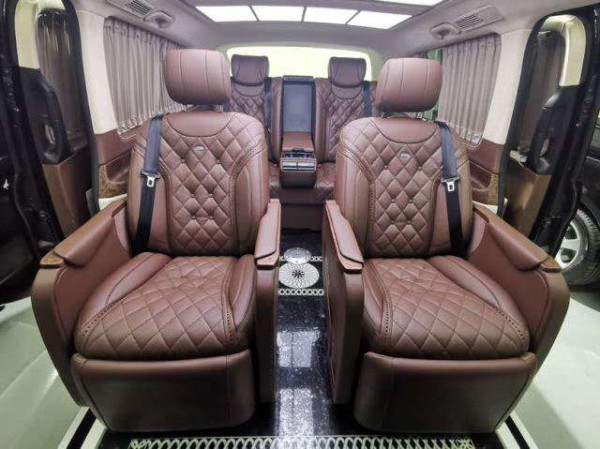 20款进口奔驰V250迈巴赫商务车全车真皮座椅及软式内装,舒适度恰到好处,真实、高级材质,才能铸就进口V250迈巴赫高档舒适的乘坐感。