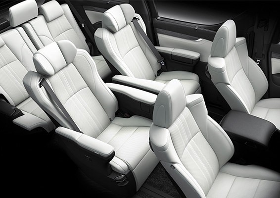 内饰方面,打开车门,一股豪华气息扑面而来,新车提供纯黑色内饰和黑白撞色内饰两种风格可选,中控台部分搭载一款方正的大尺寸液晶显示屏,下方是对称式物理按键区,视觉效果十分上档次。三幅式多功能方向盘搭配握感厚实的档把,整体显得十分动感。7座车型采用了2+2+3的布局,配备了12.3寸中控屏幕,17扬声器、自动刹车、全景影像、卡片钥匙、车载电视等。
