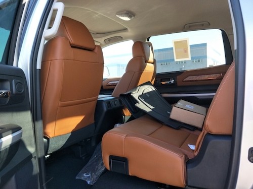 19款丰田坦途(丰田Tundra)是一款日本丰田公司生产的美版的大皮卡,其大小可以和悍马不差上下。这款车主要在北美销售,国内进口少量。很适合长途旅行的代步工具,它受到一度追捧的原因在于它的多功能性--集合了SUV的越野性能、卡车的载货能力、以及轿车的舒适性。丰田坦途五个小仪表给出了司机应该注意的技术参数,转速表、时速表、油量表、水温表、电池/机油表依次排列,数据显示清晰明了,中控台科技感十足,三辐方向盘延续了家族设计理念。金属、木材、皮革等多材料营造了相当豪华的视觉感受,丰田坦途内饰简洁大方依旧突出了实用特点,室内色彩的精致搭配,让整个内部空间既充满质感又倍感时尚。