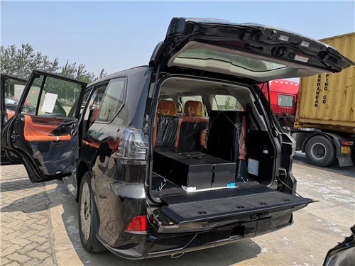 19款雷克萨斯LX570 S限量黑曜版 主要特点:高级皮革座椅子绗钻石型缝合、特别黑色版钻石针迹地垫、21英寸黑色合金车轮、烟熏式LED大灯、烟熏前雾灯和驾驶灯、黑门把手和车顶栏杆、网孔式黑色散热器。