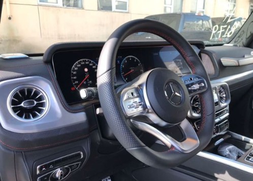 内饰是此次奔驰G级换代的最大最大亮点之一,给人耳目一新的感觉,双12.3英寸液晶通体屏幕外加与奔驰E COUPE相同的空调出风口设计,让大G的内饰更加豪华,科技感也有所增强。沿用多年的四辐式方向盘也改为三辐式设计,三点以及九点处的多功能按键也与S级 (配置|询价)车型相同,两侧黑色触控按键可以控制仪表盘信息,其中行车电脑和右侧模拟仪表都可以进行切换,可显示油耗、续航里程、车辆状态等信息。在内饰用料方面,奔驰全新G级内部均采用了真皮材质包裹,手感极佳。在副驾驶台上还增加了碳纤维扶手,保护了车内人员在行车时的安全性。