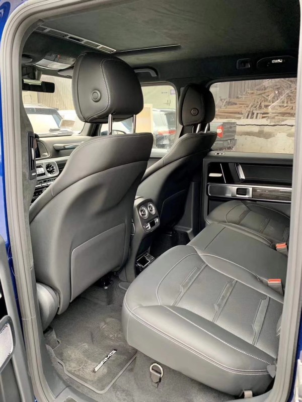 20款G63后排的腿部空间,相比之前车型得到了非常明显的提升。另外前后座椅的触感与舒适性以及后排座椅的倾斜程度均进行了升级,在配上标配的64色氛围灯,让这辆全新G63可以在长途旅行中提供更为舒适惬意的环境。