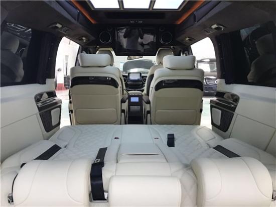 奔驰威霆改装奔驰V260L商务车第二排座椅达到了飞机头等舱的标准,手感细腻的进口纯手工真皮包裹,配有精致缜密的缝线,细节之处见真章。不仅看上去更有档次感,而且在您坐上去之后就能感觉到它完美的衬托感!还具有多向电动调节等功能!具有通风、加热、按摩及180度选装等功能,此航空座椅与其它座椅的最大区别就是可以横向电动调节,这是别的座椅所不具备的。