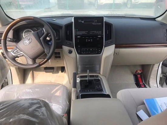 2019款丰田酷路泽4600整个操控区域色调为深色系,仪表盘,方向盘和排挡等位置均配以桃木装饰,尽显豪华质感。丰田酷路泽4600不但有DND导航,这款车的倒车影像还可以显示在内后视镜上,中央扶手箱还装备了冷藏箱,这些都与中规版的车型是有所不同的。