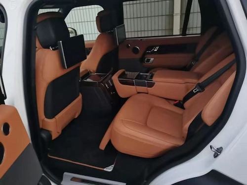 2019款路虎揽胜柴油创世加长,高功率SDV6发动机,欧六排放,圣托里尼黑/黄褐,金属漆,原装22寸刀锋轮毂,原装抬显,原装PLUS冰箱,原装腿托,24项调节前排空调座椅,前后通风加热按摩座椅,后排商务座椅电动扶手,10.2寸屏后座娱乐系统,300PD 创世包(商务座椅,前排座椅24项调节,带热石按摩功能,滑动式全景天窗,星空顶电动及手感遮阳帘,后排侧车窗电动遮阳帘,前窗隔音玻璃,后窗私密玻璃,雾灯,矩阵式像素LED大灯带清洗,盲点辅助(并道辅助),车道偏离预警,825W音响,全地形控制,原装实木桃木加热电动方向盘,实木桃木内饰,二代地形,室内可调环境氛围灯,外后视镜电动/折叠/加热/防炫目/照地灯,照明迎宾饰板,原装环车影像,前后雷达,巡航定速,原装无钥匙进入,原装电吸门,原装脚感电尾门,隔热加热挡风玻璃,12.3寸TFT仪器显示,Wi-Fi热点,高级脚垫,4区空调,10寸后娱)