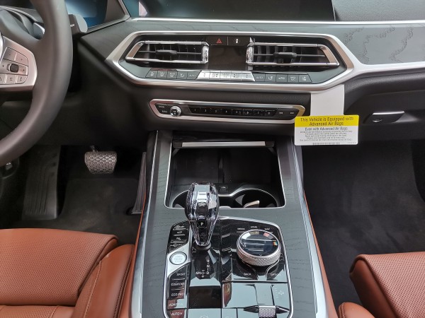 19款美规宝马X7 3.0T 7融入最新家族式设计元素,内饰大部分区域由银色饰条及木质面板加以点缀,配备带有注意力监测的液晶仪表盘及全新的三辐式多功能方向盘,中控区域为悬浮式触控显示屏,下方为空调出风口与实体功能按键,杯架处还加入可为饮品制冷或加热的功能,换装全新的水晶电子档把。除此之外,新车还配备了Vernasca皮革内饰,四区气候控制系统及三段式全景天窗。