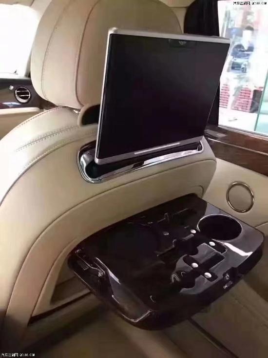 来到后排:新车专门为后排乘客准备了10.2英寸的安卓系统平板电脑,可自行下载APP,也可以从前排头枕处摘下取走。如果乘客想在行车过程中处理工作,还可以为后排座椅选装折叠桌板。内部充分利用额外的后排空间,宾利研发了航空式电子腿托,组装在两个后排座椅的基座上。腿托可以向外延伸和旋转,为后排乘客提供直立、放松、倾斜等不同座椅位置的乘坐体验。