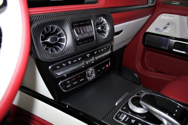 Brabus在W464 AMG G63 (配置|询价)外观的改装,虽仍旧是前保杆、引擎盖、外扩轮拱、后尾翼、备胎盖,前车顶的猫耳朵昼行灯也如法炮制,材质一样采用高档性能味的碳纤维包裹,但整体这款800 Widestar Mk2仍散发出绝然不同的气息,全新外观霸气高冷!
