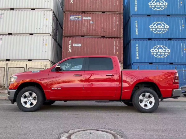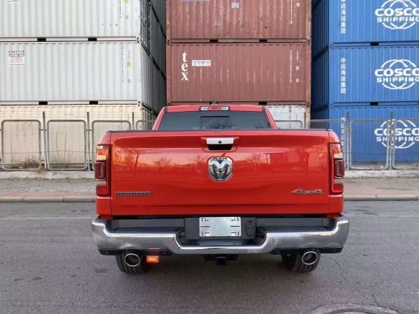 2019款道奇公羊大角牛不仅外观上刚劲有力表现出皮卡车所具备的硬朗风范,而且内部配备的豪华性在同级别车中同样可圈可点。道奇公羊长角号的眼神中没有透露出一丝的活泼神韵,唯一展现出来的只有凶狠。2017款道奇公羊长角号进气口位于右侧大灯的位置,高度在一米左右,高于绝大多数轿车和SUV,另外20英寸的大脚也算是运动气质的一种表现。硕大的中网造型同样很震撼,“高鼻梁”的设计风格也是车头部位凶猛的精髓之处。车头使用了小幅前倾的俯冲式设计思路,意在突显霸气和威猛。