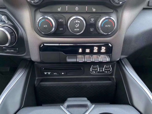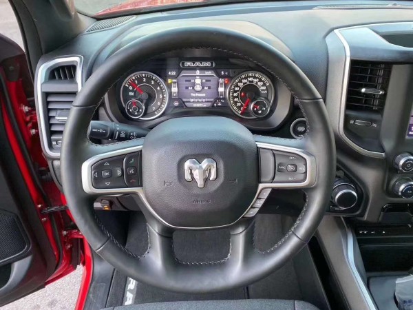 19款道奇公羊大角牛皮卡在内部设计上还是延续了美式那种比较粗犷的风格,规整的中控台设计看上去比较板,但丰富的配置会让你不由得为其称赞。中控台的设计简洁硬派,符合公羊的气质。仪表盘底边有花纹,则更加凸显了这款车的文雅性。软性材质的仪表台设计,摸上去手感非常舒服,并无些许生硬之处。