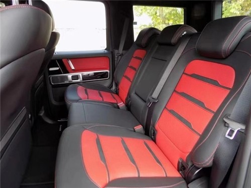 内饰方面其实才全新一代G级最大的变化。新车换上了奔驰最新家族式的内饰设计,这无疑让G级拥有了旗舰级应有的豪华感,不过经典的副驾驶席扶手和三把锁的开关键依旧延续了经典设计,并设置在中控台最显眼的位置。其中双12.3英寸高清屏,虚拟仪表盘与中控液晶屏融为一体,视觉上形成一个宽屏驾驶舱,中部的涡 扇式空调出风口也颇具设计感,还大量采用了皮革的包覆。另外,新一代G级还对驾乘空间也进行了优化。
