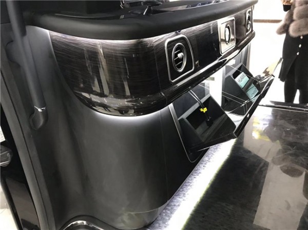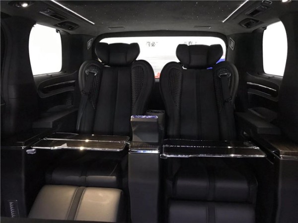 蒙娜丽莎限量版采用5门4座MPV整车布局,后舱后排独立两座与前舱全隔断商务洽谈私密空间,配备前后舱即时对讲手提电话,座椅扶手多功能键区及隐藏式行政大桌板,整舱氛围灯、阅读灯及前方电视等娱乐系统。双侧电动侧滑门及电动后尾门,360度环车影像,随动转向大灯。