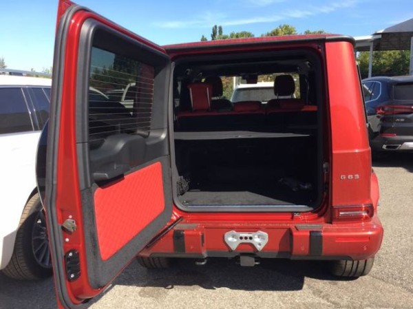 2019款加版G63 中国红/红内,全球限量版 标配4.0升V8AMG发动机,577匹马力,AMG变速TCT 9速变速箱,前座椅记忆,前排座椅加热,滑动玻璃天窗,三区气候控制,空气净化,电热挡风玻璃,加热方向盘,AMGNappa真皮性能方向盘,Burmester环绕声系统,苹CarPlay,64色LED环境照明,自动启动/停止,AMG性能排气系统,AMG高性能制动系统,红色的刹车卡钳,AMG控制自适应阻尼架,主动车道保持辅助,盲点辅助,主动刹车辅助,交通标志辅助,主动停车辅助,360度环影,主动多光束LED照明系统,LED日间运行灯。选配 AMG运动包 designo高级金属漆 22寸轮毂 独家定制座椅